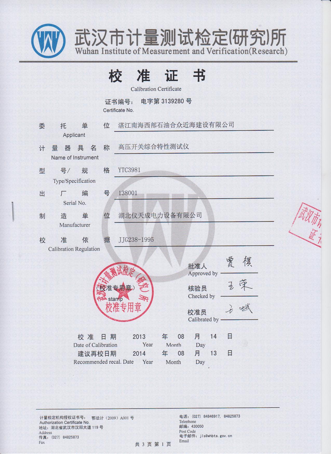 1適用于國內外生產的所有型號的SF6開關、GIS組合電器、真空開關、油開關的機械特性試驗。