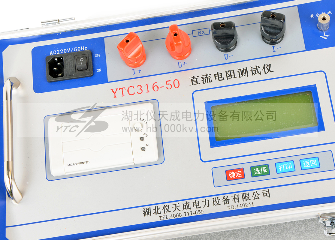 YTC316-50直流電阻測試儀采用全新電源技術,具有測量迅速、體積小巧、使用方便、測量精度高等特點,是測量變壓器繞組以及大功率電感設備直流電阻的理想設備。
