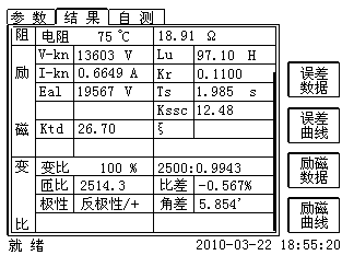 | 匝數(shù)比 | 被測試的二次繞組與一次繞組的實(shí)際匝比 | √ | √ | √ | √ | √ | √ | √ | √ | |