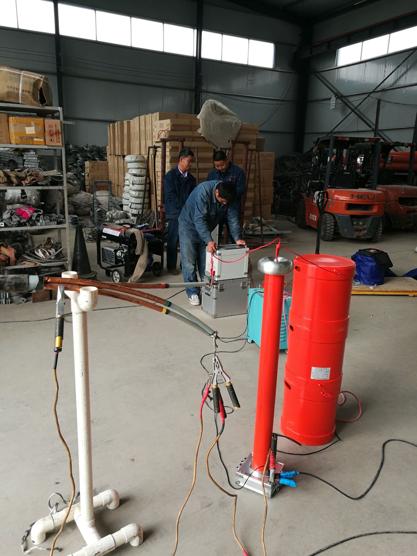接下來李工對客戶提出疑問的地方,現(xiàn)場給予細心,準確的解答。隨后,又與客戶一起到現(xiàn)場對被試品進行了試驗,指導客戶完全熟悉和掌握了儀器操作、試驗流程。