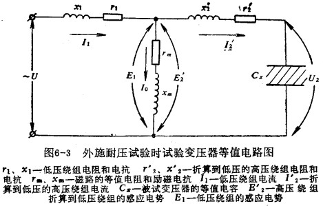 為了便于比較,根據(jù)變壓器原理,可以將試驗變壓器在耐壓試驗時副成圖6-3的等值電路圖。
