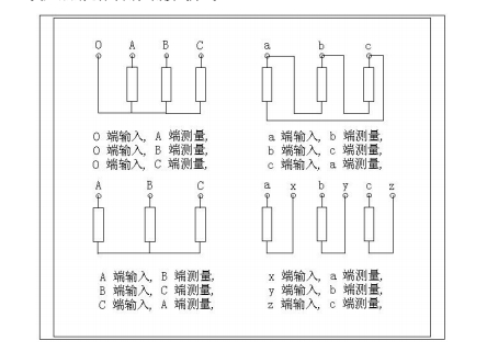 變壓器的幾種常用檢測接線方式: