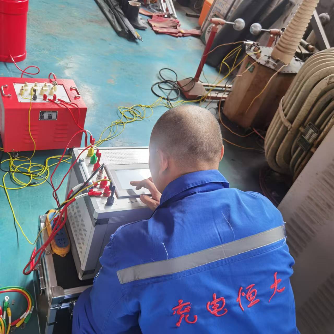 我司給山東客戶做串聯諧振售后服務