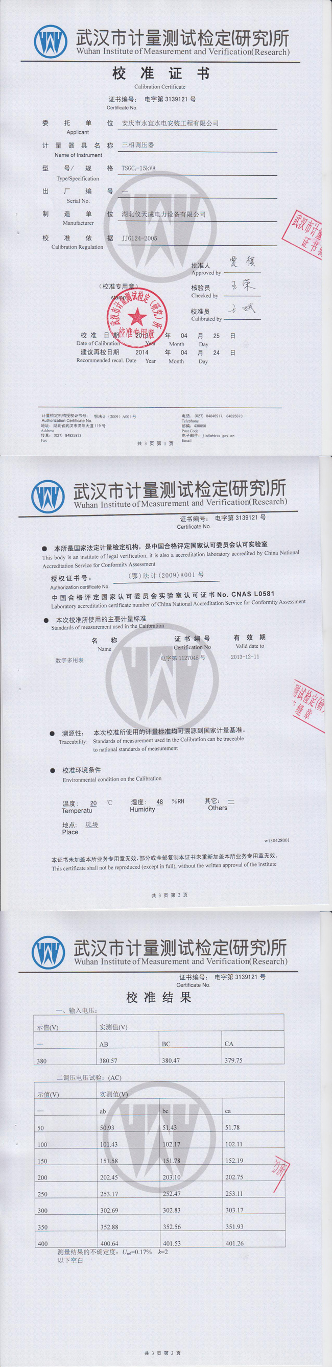 轉載:"三相調壓器資質證書" 請注明來源于儀天成電力。 更多技術問題請致電儀天成電力客戶服務:027-87876585,技術部專線:027-87876585,在線客服:719388481