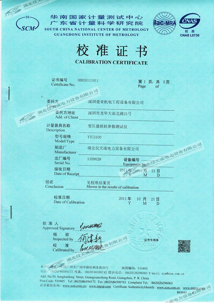 轉(zhuǎn)載:"YTC3100變壓器損耗參數(shù)測(cè)試儀的資質(zhì)證書(shū)" 請(qǐng)注明來(lái)源于儀天成電力。 更多技術(shù)問(wèn)題請(qǐng)致電儀天成電力客戶服務(wù):027-87876585,技術(shù)部專線:027-87876585,在線客服:719388481