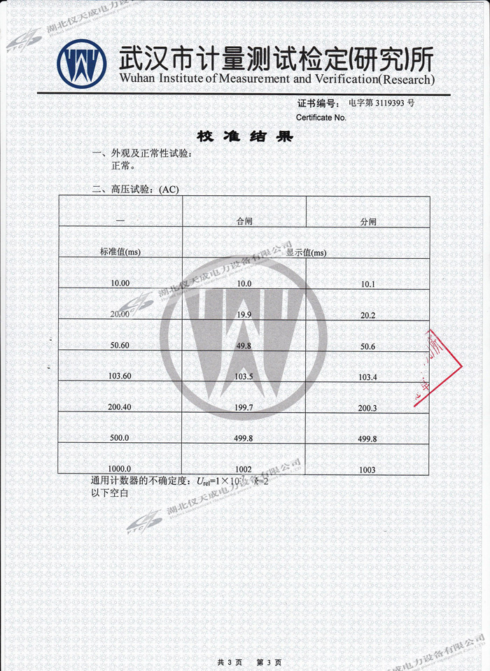 轉載:"YTC3980A斷路器動特性測試儀的資質證書" 請注明來源于儀天成電力。 更多技術問題請致電儀天成電力客戶服務:027-87876585,技術部專線:027-87876585,在線客服:719388481